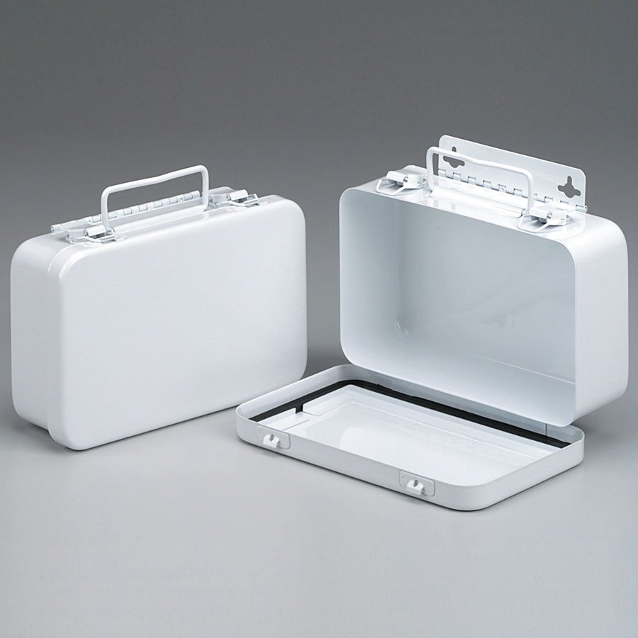 10 Unit, Empty Metal Case w/ Hanger & Gasket, 7-1/2"x4-1/2"x2-3/8", Horizontal - 1 Each This horizontally configured empty metal first aid case holds up to 10-units of product and features a hanger and gasket. Kit Dimensions: 7-1/2"x4-1/2"x2-3/8"