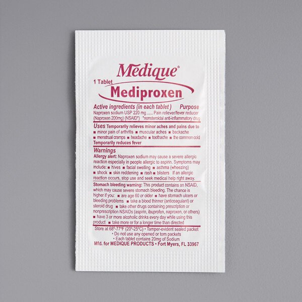 Mediproxen, 100 tablets per box, 100 packets of 1 tab each