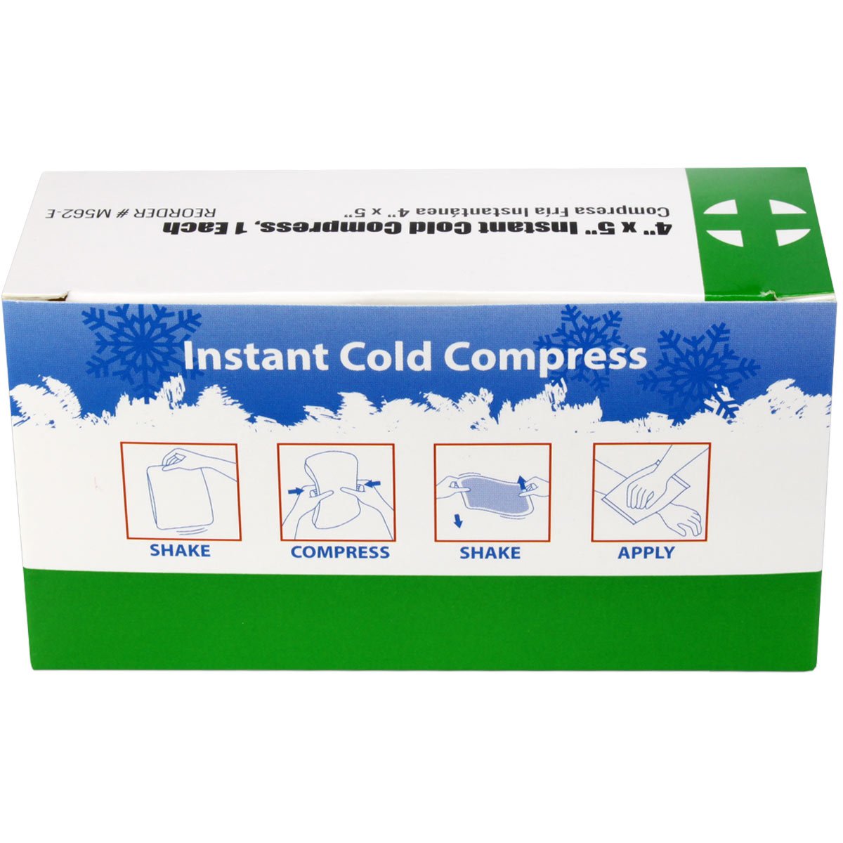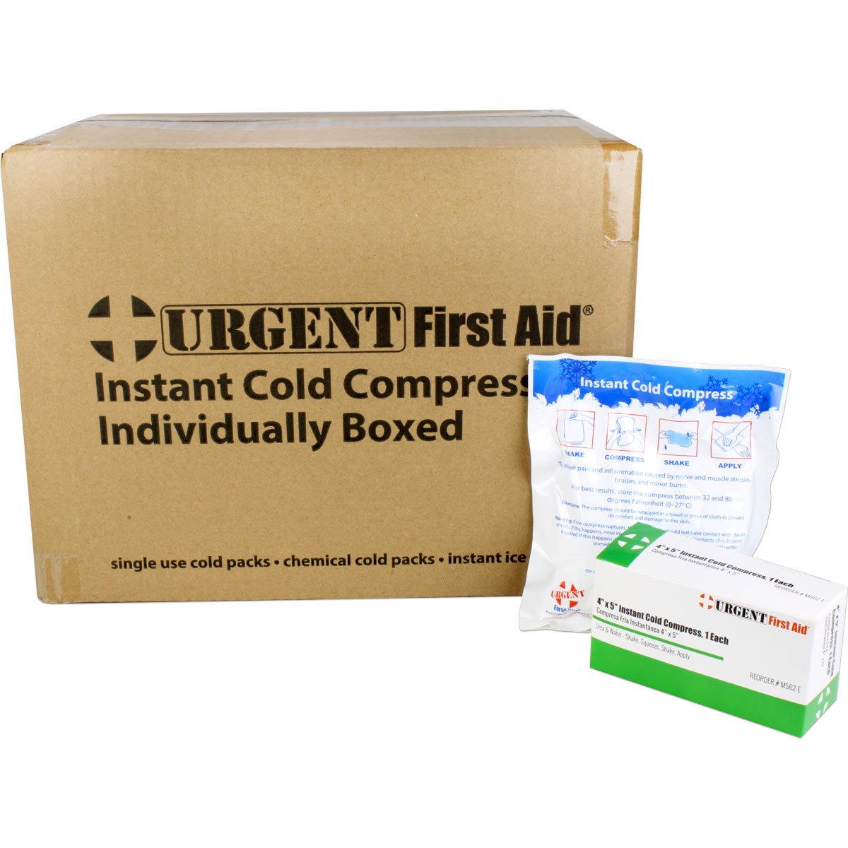 Our 4" x 5" Instant Cold Compress temporarily relieves minor pain and swelling for sprains, strains, aches, bruising, and sore joints. The Urgent First Aid™ instant cold packs are conveniently disposable with no pre-chilling required for quick, effective relief. No messy ice bags needed. Just shake, squeeze, shake again and apply for instant cool comfort and treatment of injuries.